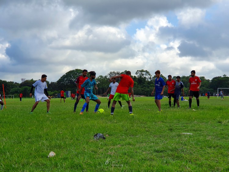 Cricket isn’t the only sport that the Maidan hosts. Football and Hockey too are a common sight here. The matches here range all the way from street style to professional club practices and an age group spanning from 6-7-year olds to those in their sixties. Several poles and goalposts have been set up for the same. Since I was visiting on a Sunday, I managed to catch a glimpse of the practice sessions in their full glory and several people playing their own matches. Photographing the football games here poses a unique challenge. Due to the large amount of people playing in small groups in very close proximity, it is very easy to look in the viewfinder and get hit by a stray penalty shoot. It’s like watching football while playing dodgeball.